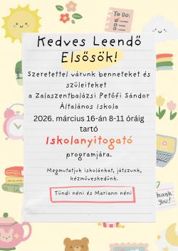 Hírek Iskolanyitogató 2026.03. 2026. március 06., péntek @ 15:29 Iskolanyitogató foglalkozásra várjuk kedves leendő elsőseinket. Kapcsolódó galéria Iskolanyitogató 2026.03. Megosztás