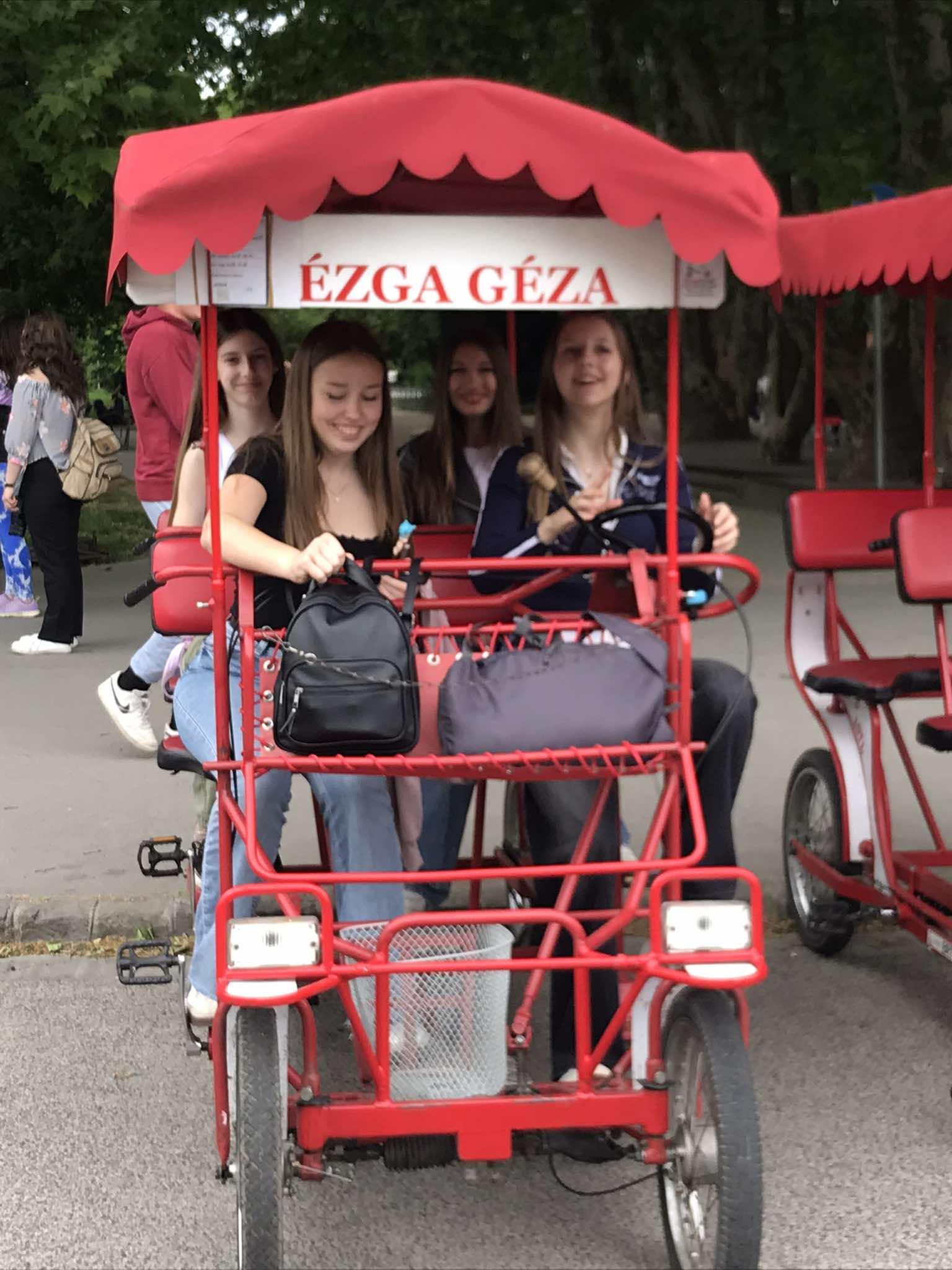 8. osztályunk Budapestre látogatott. A Margit-szigeten sétáltak, bringóhintóztak, meghallgatták a zenélő szökőkutat. Megfordultak a Szent István-bazilikánál és a Vörösmarty téren. Végül az Országházat csodálták meg.