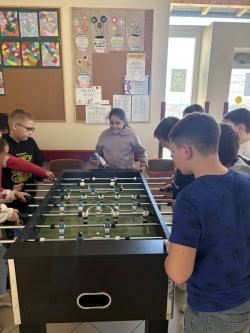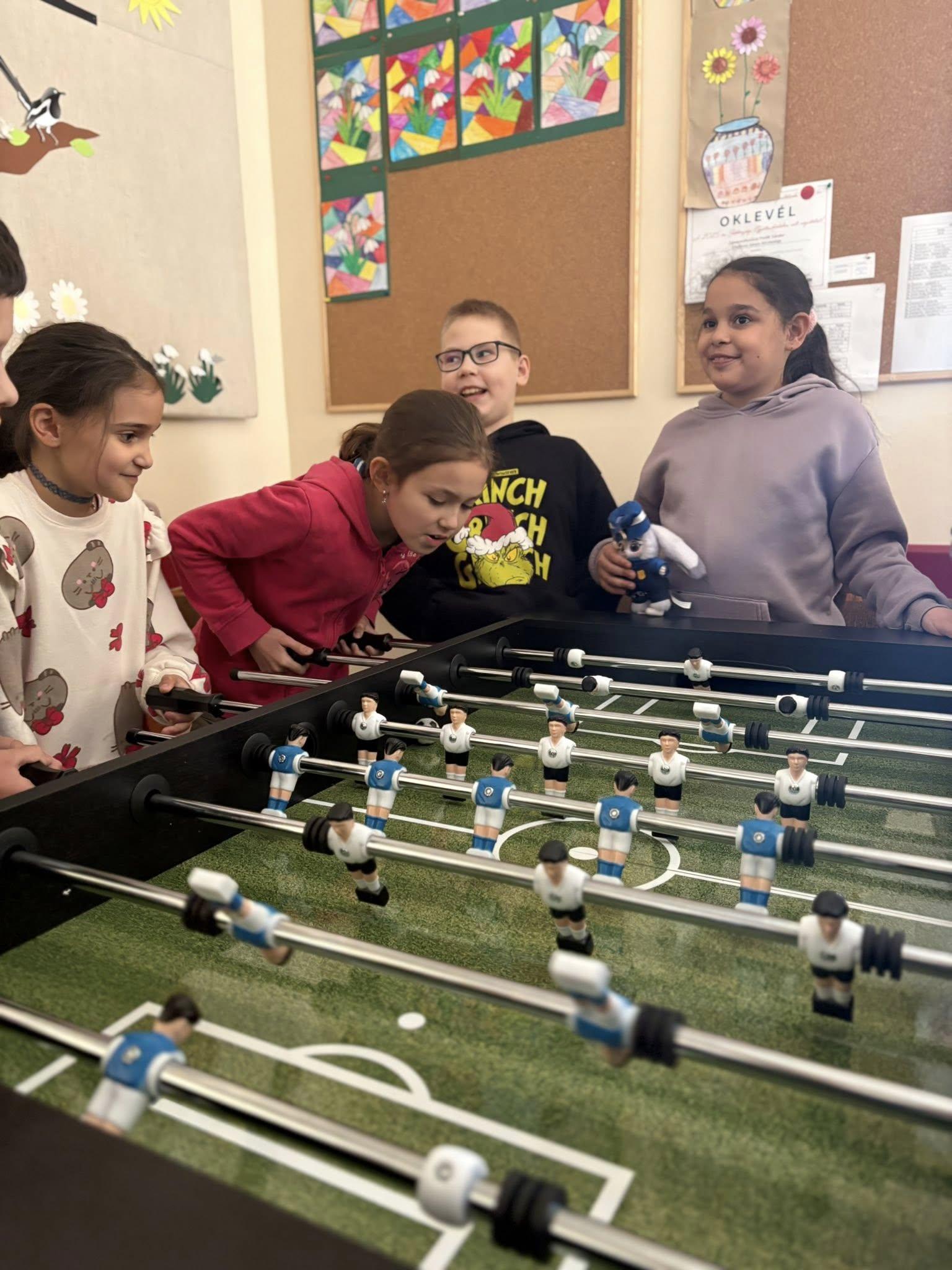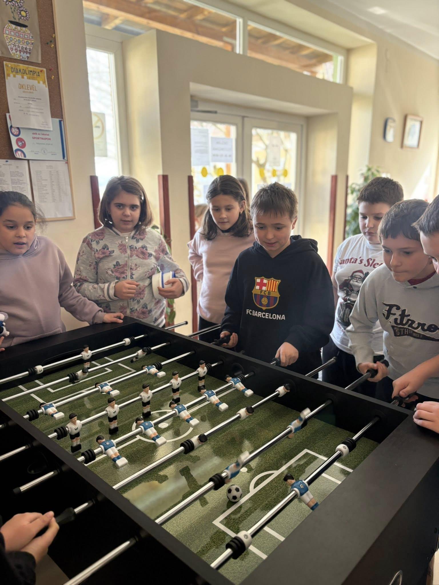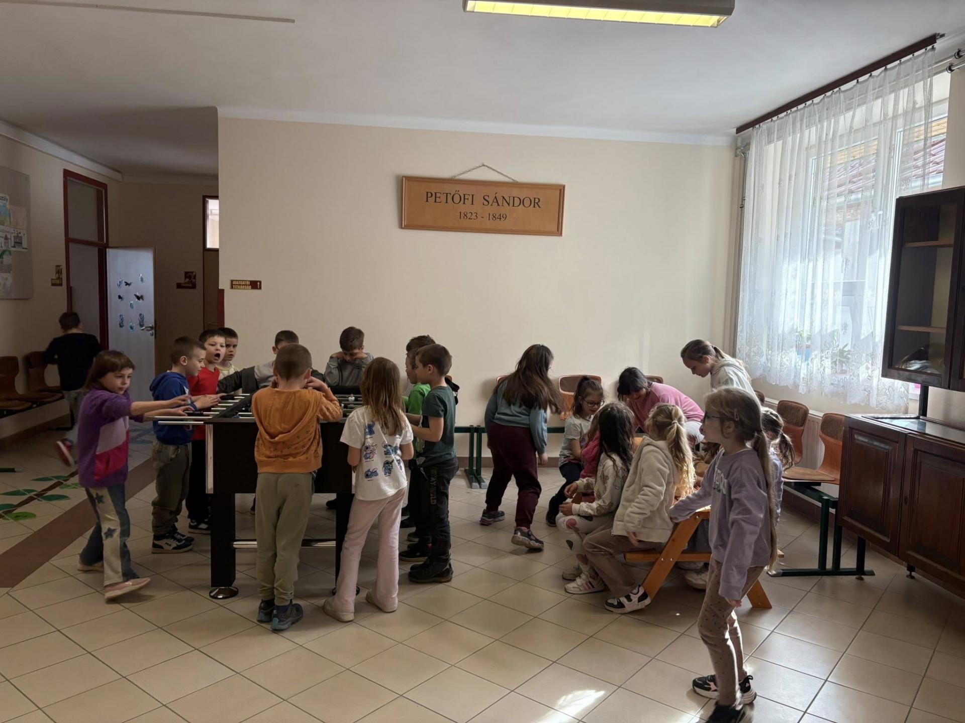 A mai napon birtokba vehették a gyerekek az új kispadokat és csocsóasztalokat, léghokit és kisházat, amelyeket az idei évben megtartott Petőfi-gála és az Alapítványi bál bevételéből vásárolt a Gyermekekért Alapítvány.